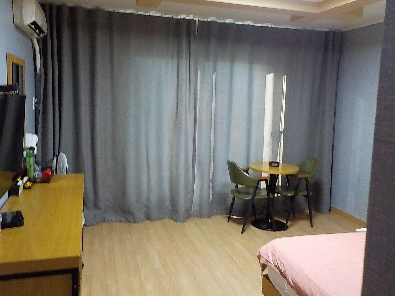 저희가 하룻밤 묵었던 방... 일단, 방 크기가 넓은 편입니다. 시골 오래된 모텔 중에는 방이 너무 작은 곳도 있는데, 여긴 넓은 편이어서 그것부터 마음에 듭니다. 문도 중문이 설치되어 있고, 중문 안쪽으로 욕실도 배치되어 있어서 이래저래 괜찮은 구조... 외관에 비해서는 내부는 깔끔한 편이었고, 벽지나 욕실 모두 최근에 리뉴얼 한 모습입니다. 그나마 다행...
