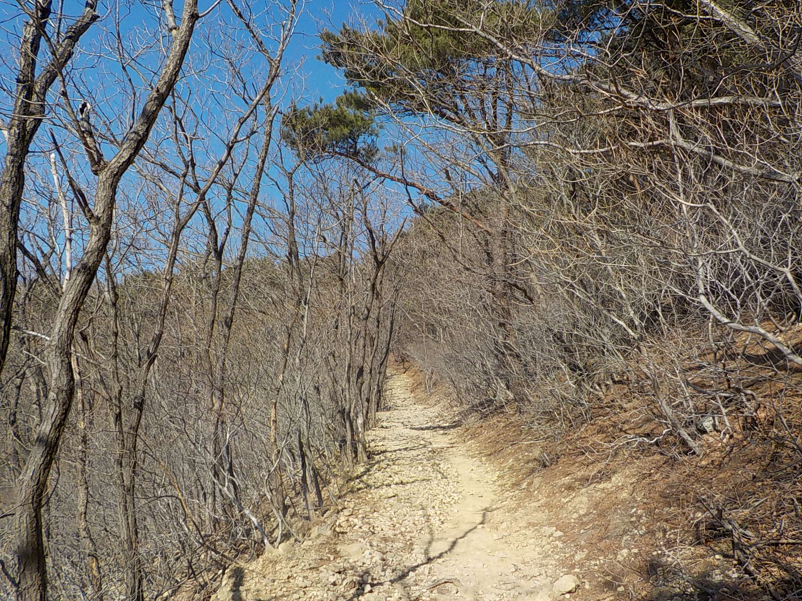 이정표도 있고 길도 넓어서 길을 잃을 염려는 없겠네요. 사진에는 없지만, 이 길 중간중간 아래 계곡 쪽으로 내려가는 샛길도 여럿 있습니다.