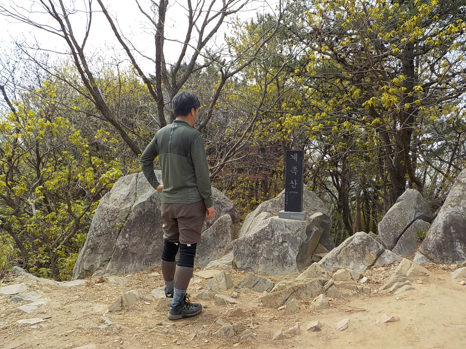 계족산 정상석... 해발 423미터... 참고로, 산 아래 계족산 무료주차장에서 35분쯤 걸렸습니다.