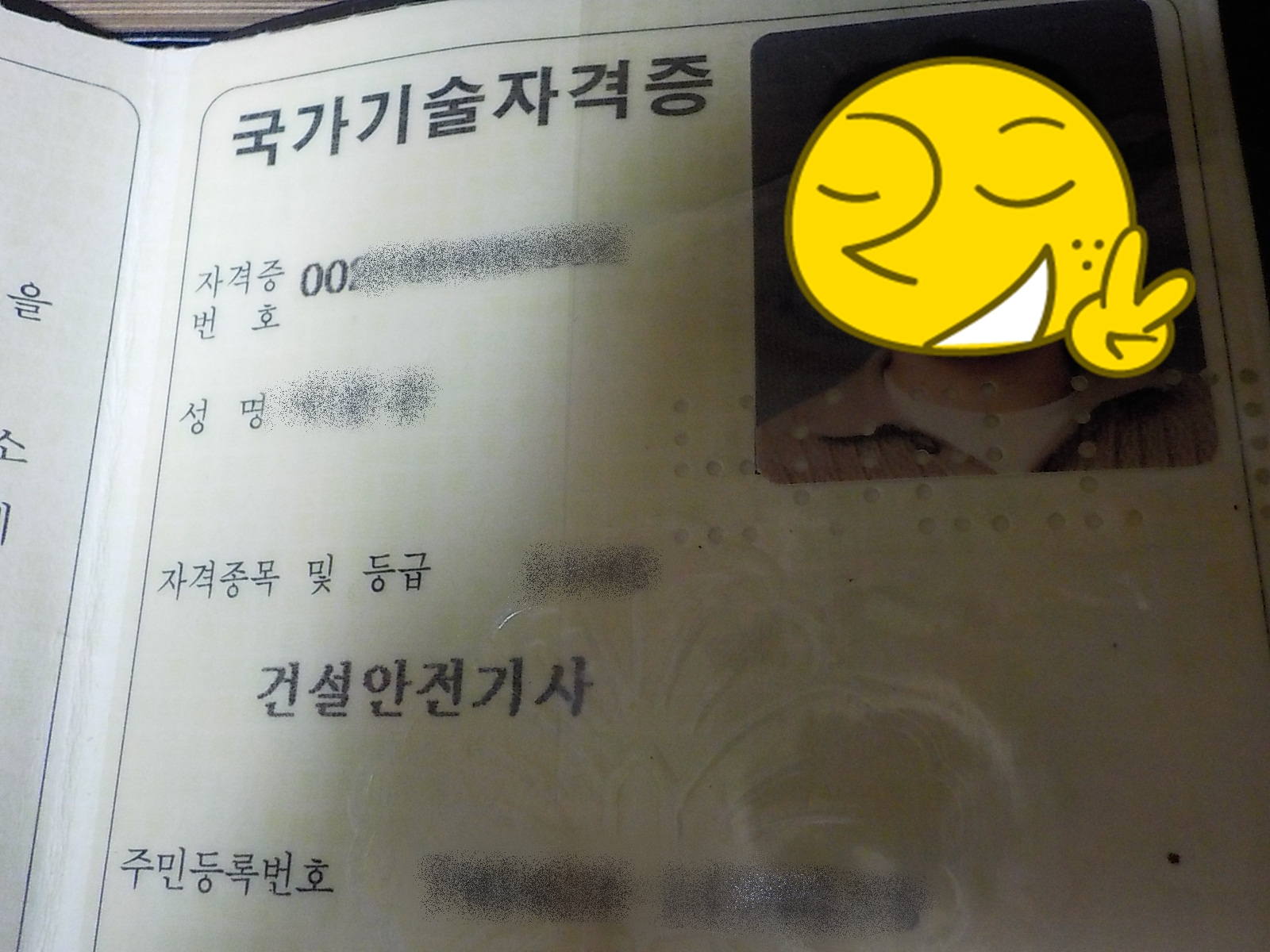 제가 20여 년 전에 취득한 건설안전기사 자격증입니다. 그땐 어떻게든 좋은 직장에 취업하기 위해 솔직히 필요 없을 수도 있는 이 자격증까지 취득했었는데요, 덕분에 좋은 직장에 취직하긴 하였으나 이 자격증을 쓸 일은 없었습니다. 그건, 현재도 마찬가지고...