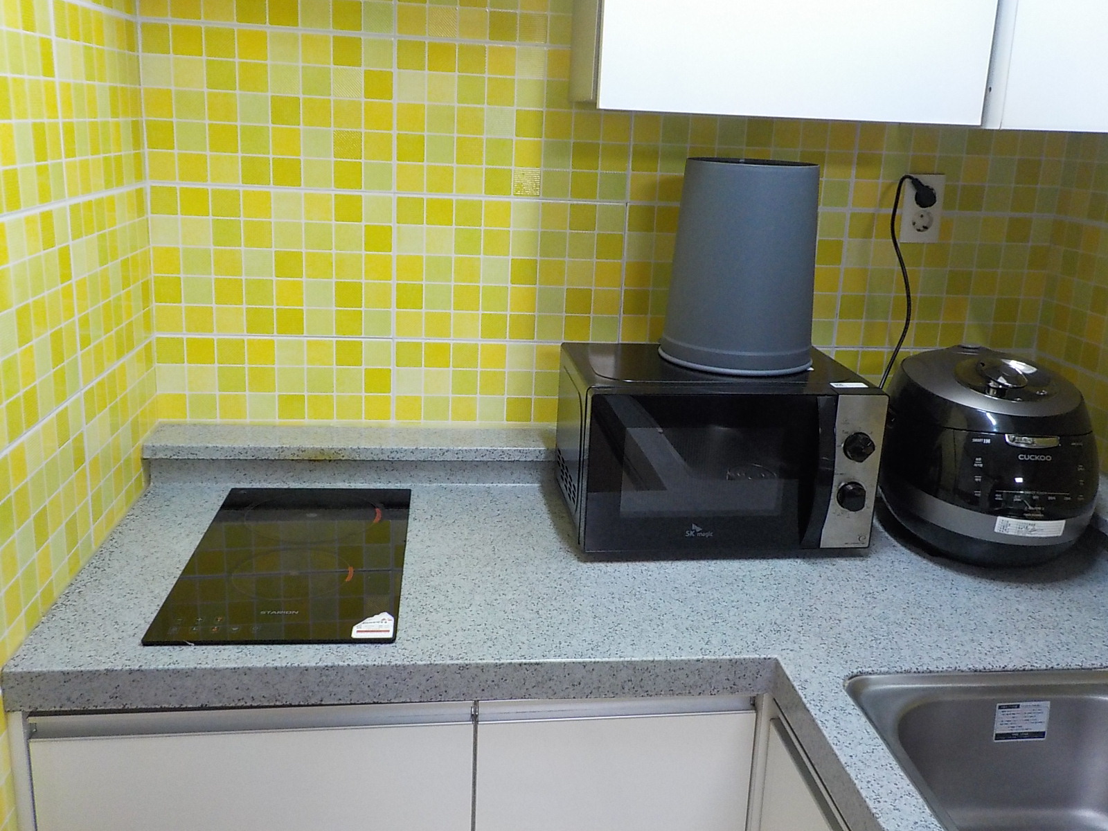 밥솥, 전자레인지, 인덕션... 웬만한 음식은 다 해 먹을 수 있는 곳입니다.