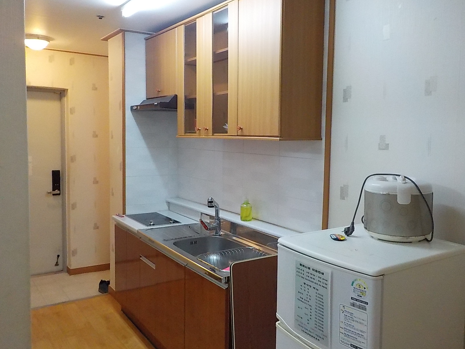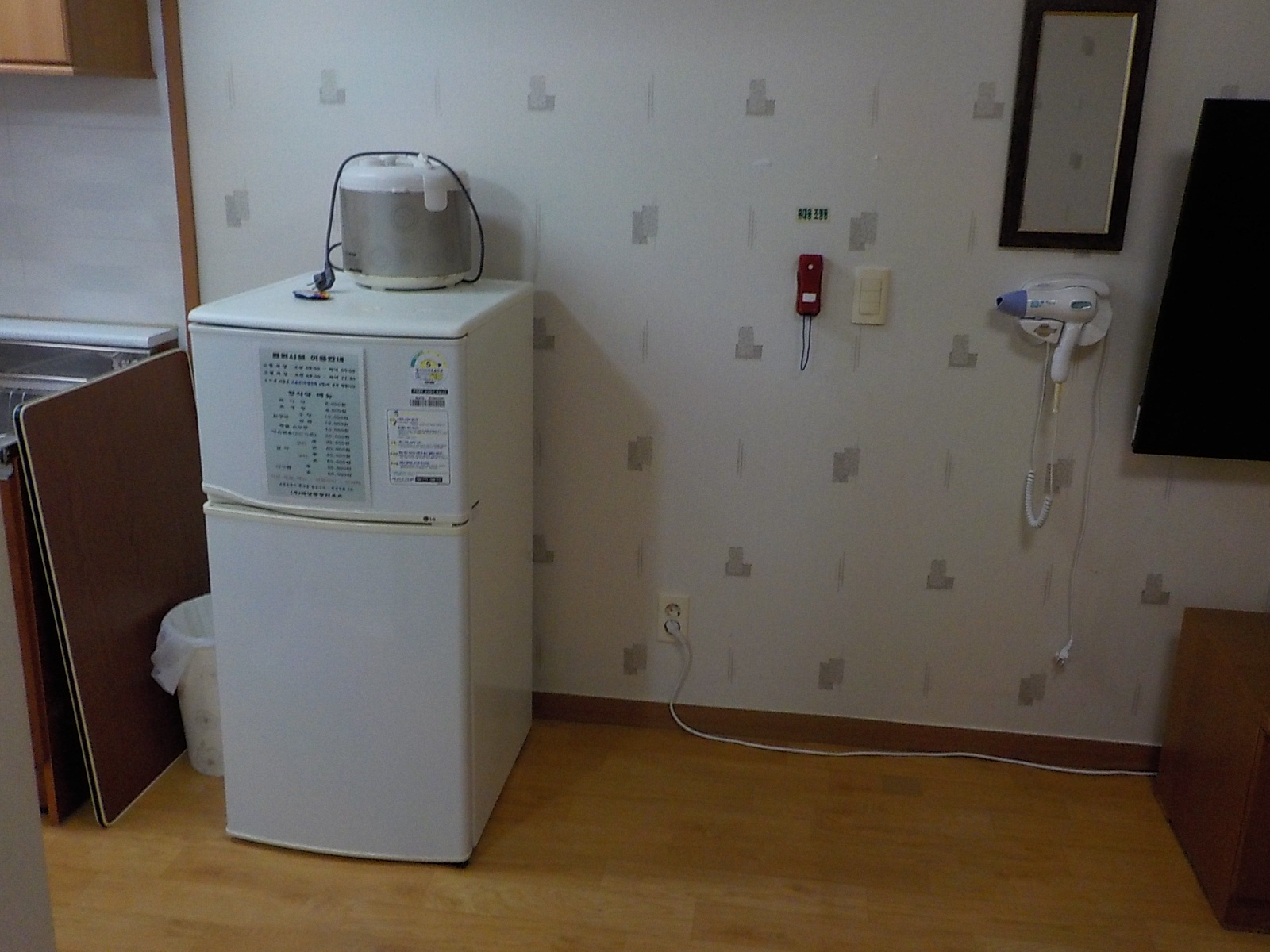 저희가 하룻밤 묵었던 객실... 4층이었고, 가장 작은 평수였습니다. 리조트라는 타이틀이 붙었지만, 사실 옛날 모텔방 느낌입니다. 모텔방인데 작은 방이 하나 따로 있고, 싱크대 및 조리기구가 있는 구조...