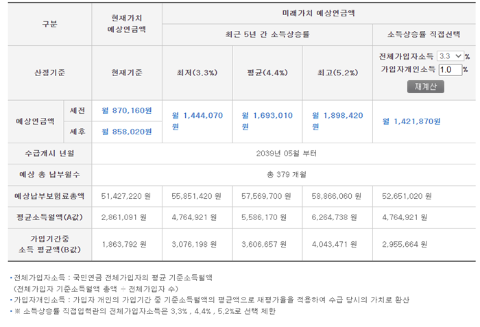 국민연금 납부액 계산법 국민연금 수령액 확인