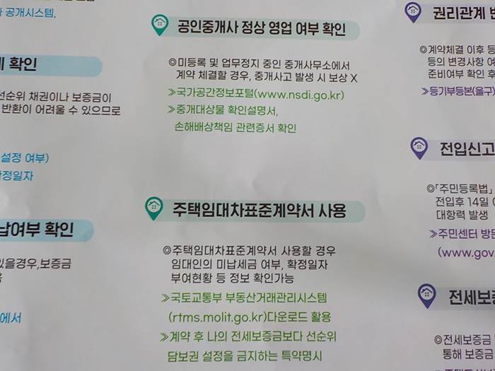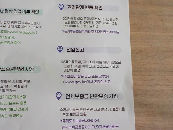 말씀드린, 동사무소에서 받은 전단지입니다. 전세계약시 유의사항을 깔끔하게 정리하고 있어서, 저처럼 이사하는 분이라면 참고하실만한 정보이겠습니다.