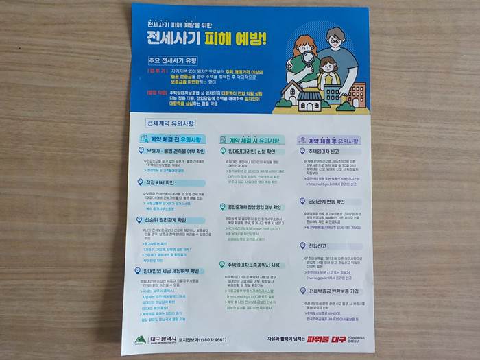 오늘은 전세사기 유형, 전세사기 피해예방 방법, 그리고 전세계약시 유의사항을 간략하게 소개해드릴까 합니다. 얼마 전 이사를 하고 전입신고를 하기 위해 동사무소를 찾았는데, 거기에 알아두면 좋을만한 안내서가 있어서 소개해드리는 것입니다. 어찌 보면 다들 잘 아실만한 정보지만 반면에 정확히는 모를 수도 있는 사실이어서 꼼꼼하게만 살펴보신다면 전세사기나 전세계약시 유의사항에 관한 정보들을 쉽게 체득하실 수 있을 겁니다. 전세계약시 유의사항 참고하시길 바랍니다.