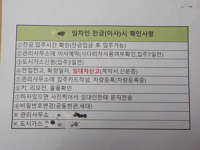 아파트 이사시 체크사항 임차인 이사시 확인사항