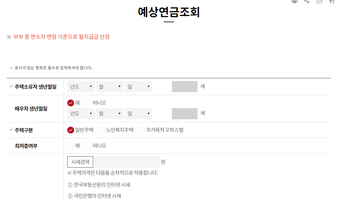 ▶한국 주택 금융공사 주택연금 수령액 계산