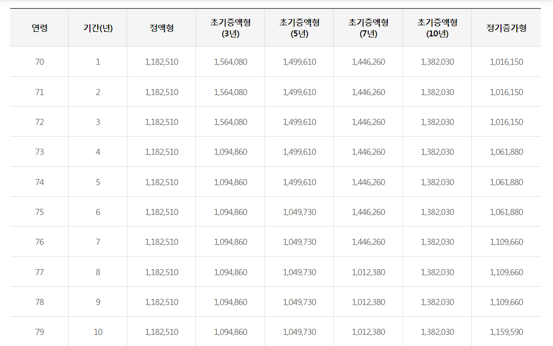 아래와 같이 기초연금수급자는 아니고 1 가구 1 주택자, 종신지급방식으로 연금을 수령하면 얼마나 수령할 수 있는지 검색했습니다. 참고로 수령방식은 다양하게 있는데, 보통은 정액형 종신지급방식을 많이 선택한다고 합니다. 그러니까, 평생 같은 금액으로 연금을 수령한다는 의미... 이외에도 수령방식에는 다양한 방법들이 있으니, 본인이 원하는 방법을 선택해도 상관은 없겠습니다.