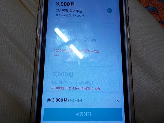 편의점 포장주문이 좋은 이유는 할인쿠폰을 거의 상시 제공하고 있기 때문입니다. 아래 사진과 같이 15000원 이상 주문 시 3000원 할인쿠폰을 사용할 수 있었는데요, 일단 쿠폰부터 받아 둡니다.