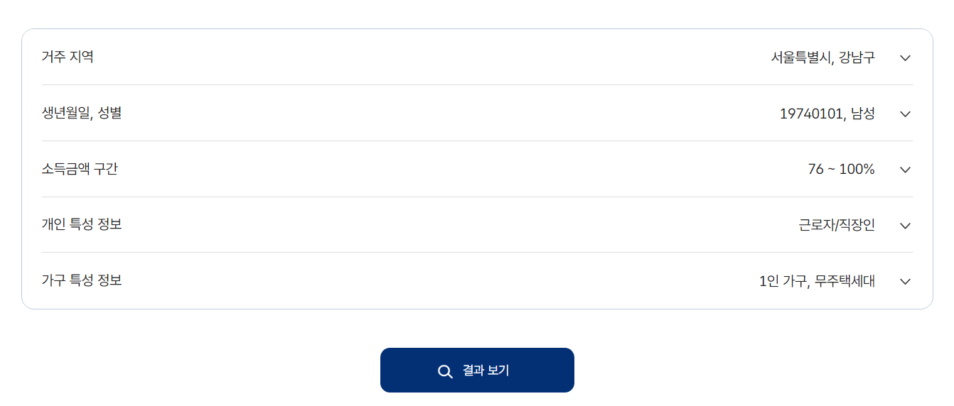 마지막으로 가구 특성을 선택하는 조건인데, 저는 '1인가구'와 '무주택세대' 두 가지를 선택했습니다.