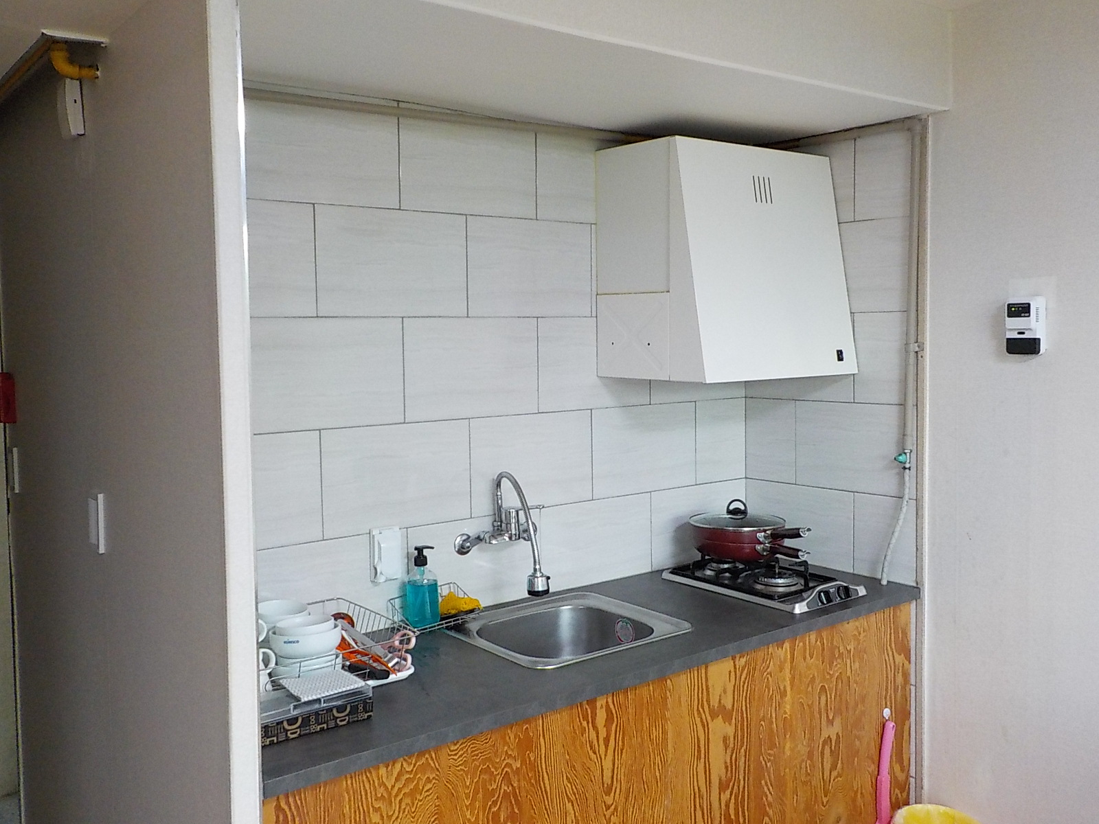 들어서면 왼쪽에 커피포트와 밥솥이 있는 식탁이 제일 먼저 눈에 들어옵니다.