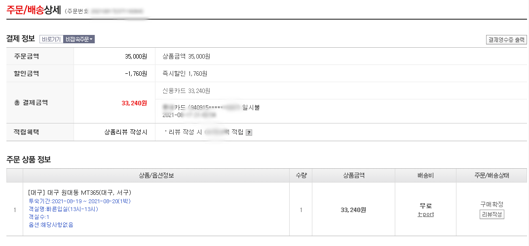 이곳의 가장 큰 장점은 말씀드린 대로 저렴한 가격... 저희 같은 경우에는 오후 1시에 입실이 가능한 빠른 입실로 방을 택했는데요, 35000원이 안 되는 가격에 하룻밤 묵을 수가 있었습니다. 정상적인 입실, 그러니까 오후 5-6시에 입실이 가능한 상품은 이 가격에서 5000원 정도 더 저렴하다고 보시면 됩니다. 3만 원 정도면 하룻밤 쉬어갈 수 있는 가격대의 모텔...