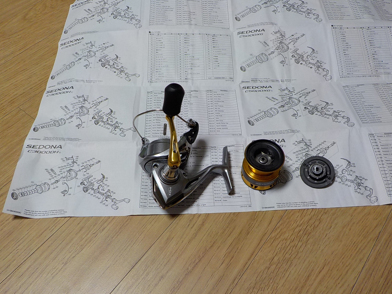 다음은 한글은 한자도 없는 커다란 제품 설명서와 릴 부품 3개...