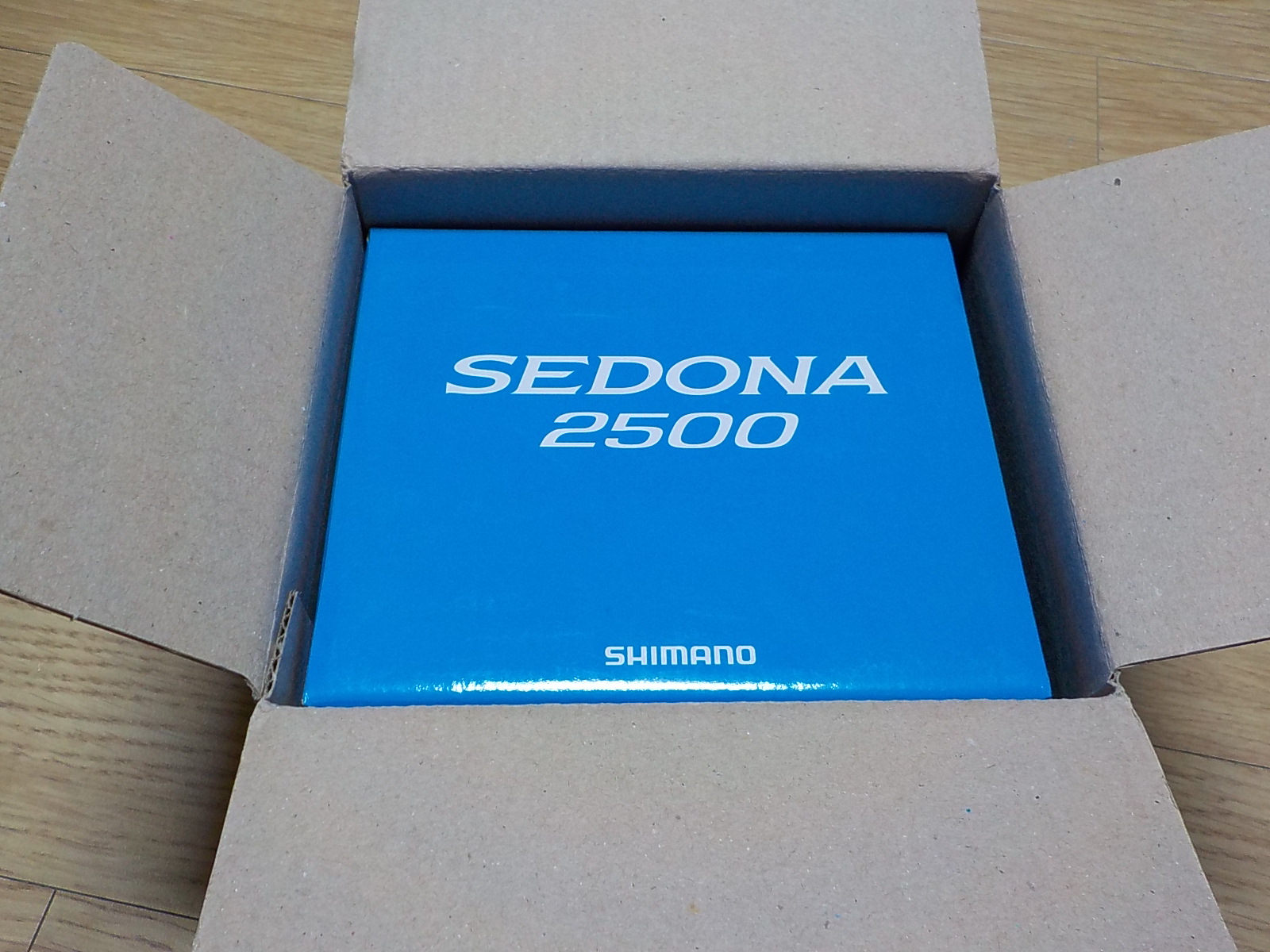 그렇게 다음날 받아본 시마노 세도나 2500번 스피닝 릴... 박스를 개봉하면, 안쪽에 딱 그 크기만 한 파란색 박스가 하나 들어있습니다.