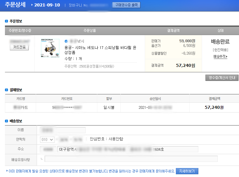인터넷에서 판매하고 있는 다양한 낚시 쇼핑몰들을 둘러보고, 거기에서 가장 저렴한 가격으로 판매하고 있는 곳에서 구입을 했습니다. 시마노 세도나 17 스피닝 릴 바다릴... 플러스 옵션에 할인을 해서 5만 7천 원 정도로 구입을 했는데, 잘 한건진 모르겠습니다. 한 가지 확실한 것은, 제가 고를 땐 분명히 여기가 가장 싼 곳은 맞다는 것... 시기나 상황에 따라 가격은 달라지고, 또 낚시 쇼핑몰마다 가격은 다르니 참고만 하시길 바라겠습니다.