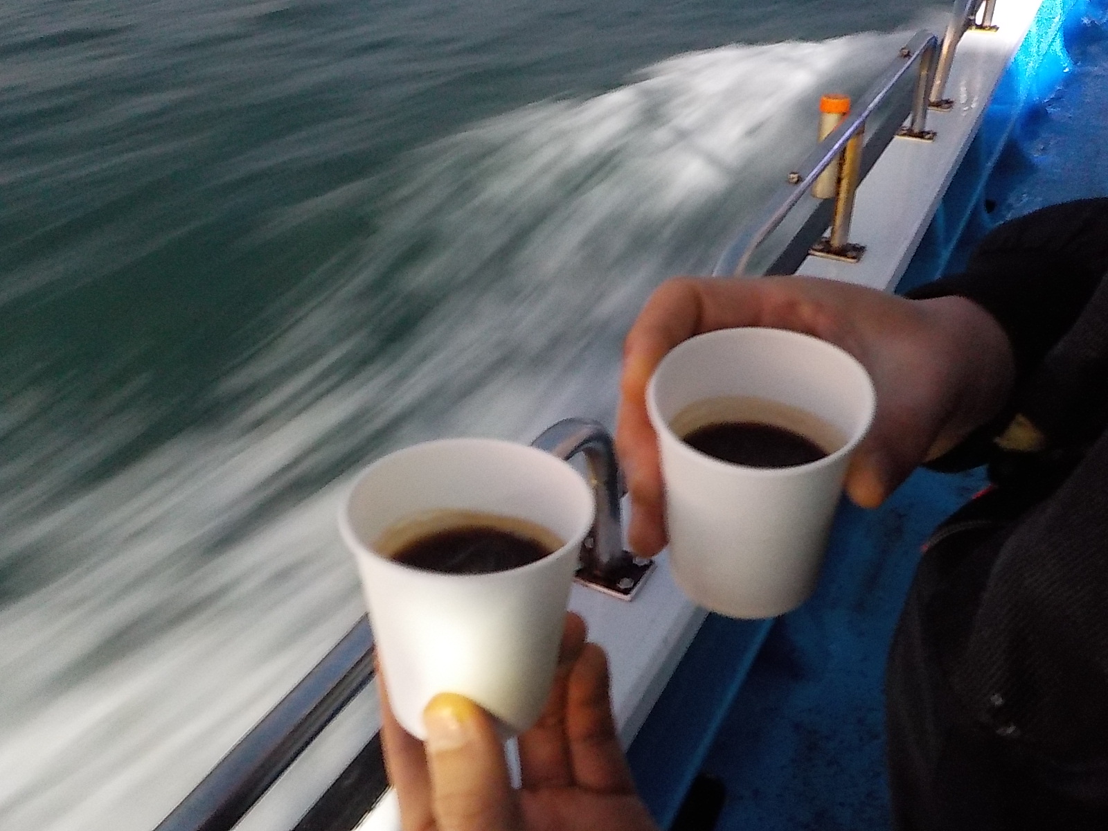 출항하자마자 커피 한잔으로 졸음을 쫓구요.