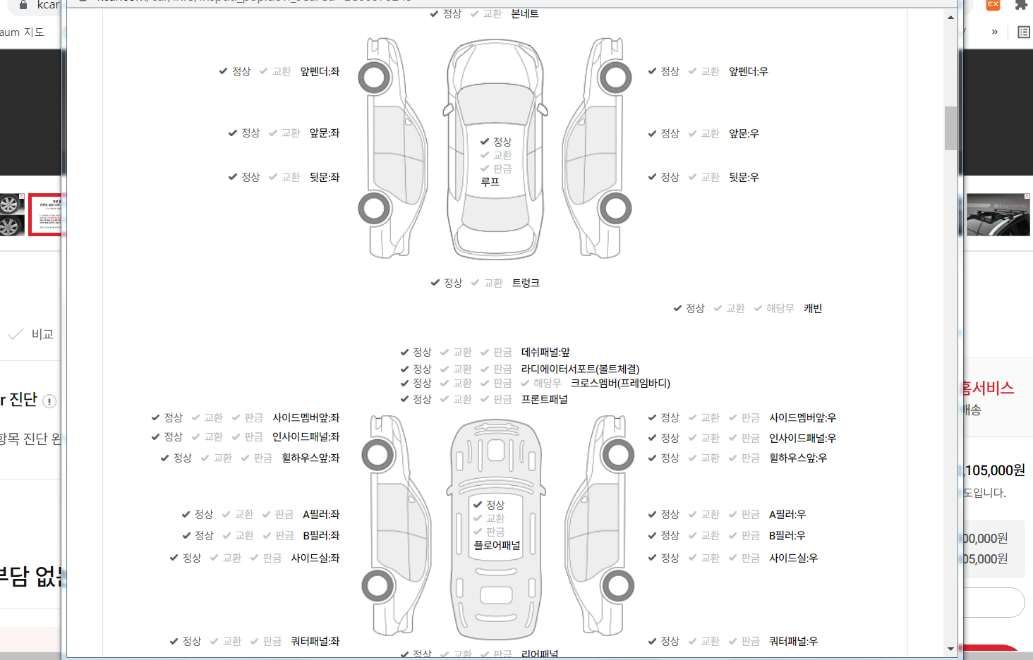 상세내역으로 가서, 교환이나 판금된 부분은 없다는 것을 확인을 하고...