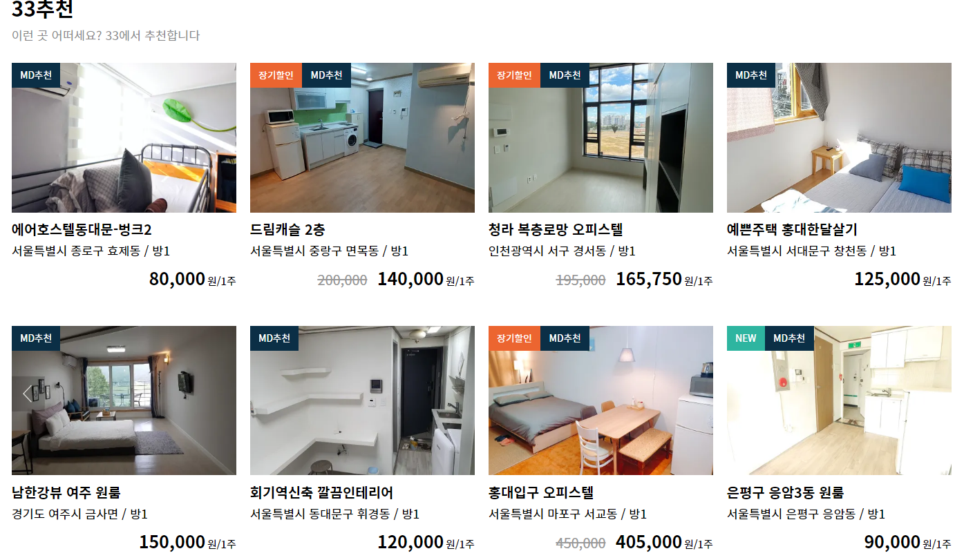 오늘은 서울 부산 제주도와 같은 전국의 어떤 지역에서도 한달살기 숙소를 쉽게 구할 수 있는 방법을 소개해드릴까 합니다. 적게는 1주일에서 길게는 몇 달씩 단기 임대 원룸이나 오피스텔을 검색할 수 있는 사이트, 삼삼엠투(33m2)... 개인적으로 여행을 좋아해서 이런 종류의 사이트를 몇 개 알고 있는데, 최근에 알게 된 곳이어서 추천해봅니다. 맨 아래쪽에는 예전에 소개해드렸던 비슷한 개념의 사이트에 대한 설명도 따로 남겨 놓았으니, 한달살기 숙소를 찾고 계시는 분이라면 참고하시길 바라겠습니다.