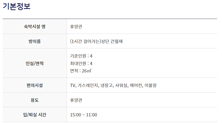 마지막으로 아래는 상단 휴양관 8인실에 대한 정보...