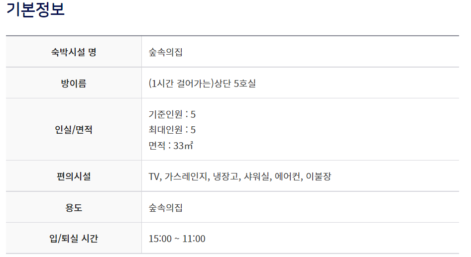 신불산 자연휴양림 숲속의 집은 4인실과 5인실로 나뉘어 있습니다. 아래는 4인실에 대한 정보이고...