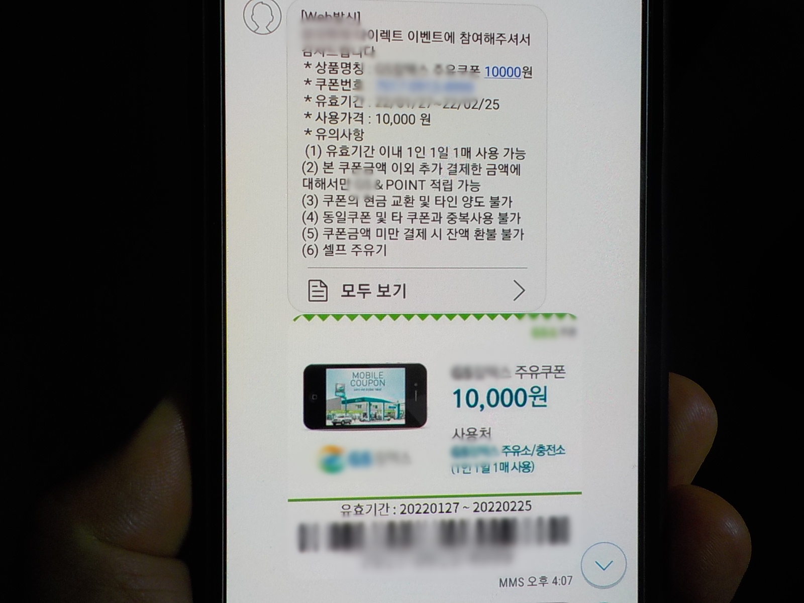 바코드가 인식이 되면 모바일 쿠폰을 주유기가 알아서 조회를 합니다.