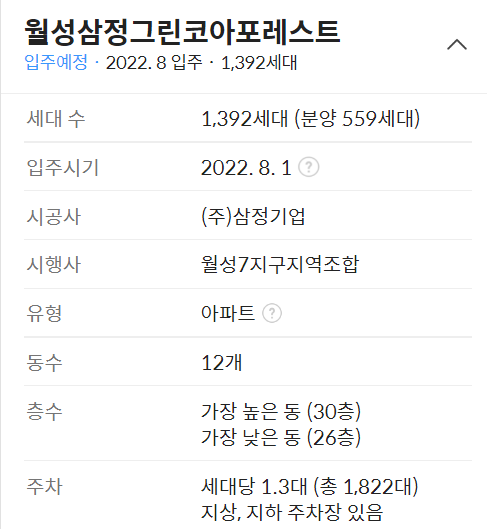 월성 삼정그린코아 포레스트 홈페이지를 확인해봤습니다. 소개해드린 정보 그대로 표기가 되어 있구요, 2022년 8월에 입주예정이라고 명시되어 있습니다. 이곳 역시나 별 문제가 없으면, 8월부터 입주가 가능할 것 같습니다.