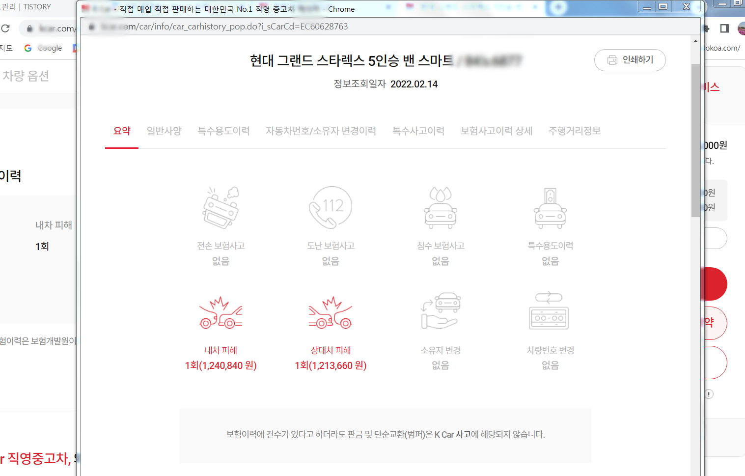 다음은 사고이력... 이 사이트는 사고이력을 확인하기 위해서는 사이트에 가입을 해야만 되었습니다. 가입을 해서 보다 자세하게 들여다보는 것도 괜찮지만, 설명을 드리기 위해 사이트에 가입까지 할 필요는 없는지라 그 부분은 생략을 했습니다. 이 사이트를 통해 중고차를 검색하고 구입까지 생각하시는 분은 가입은 한 뒤 괜찮다 싶은 차량의 사고유무까지도 파악을 해보시는 것이 좋은 중고차를 선택하는 방법 중 하나이겠습니다.