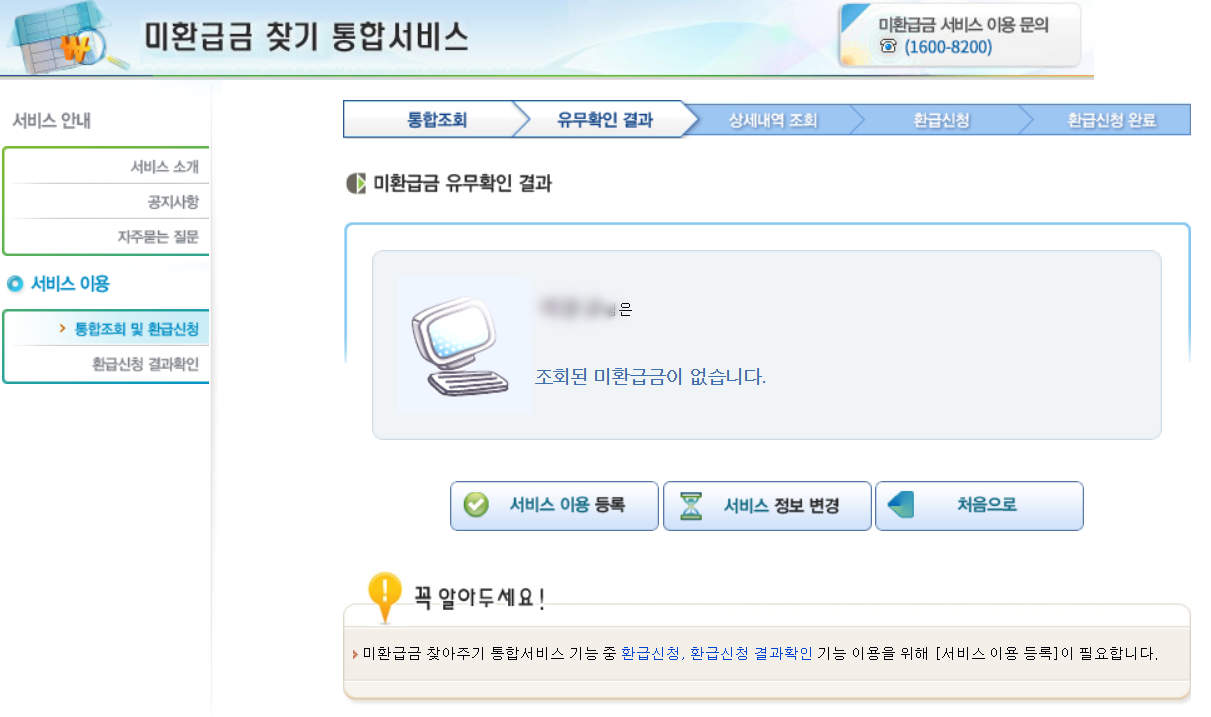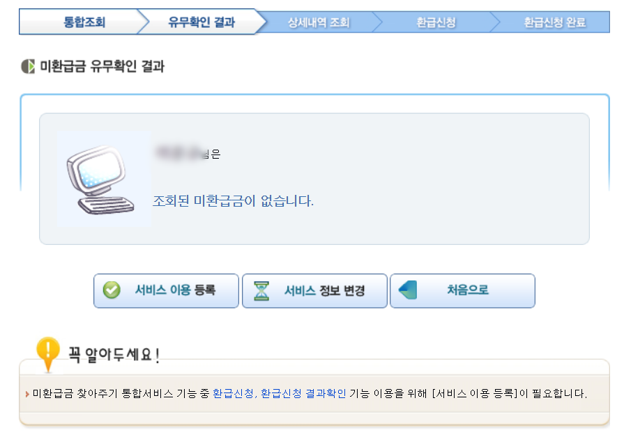 그렇게 미환급금 유무확인을 하면, 제이름으로 된 미환급금은 없다고 곧바로 나오네요. 예상은 했었지만, 왠지 약간의 섭섭함이...