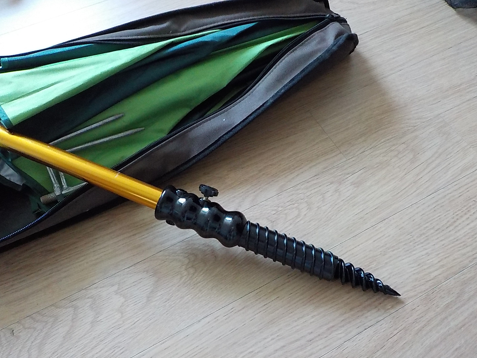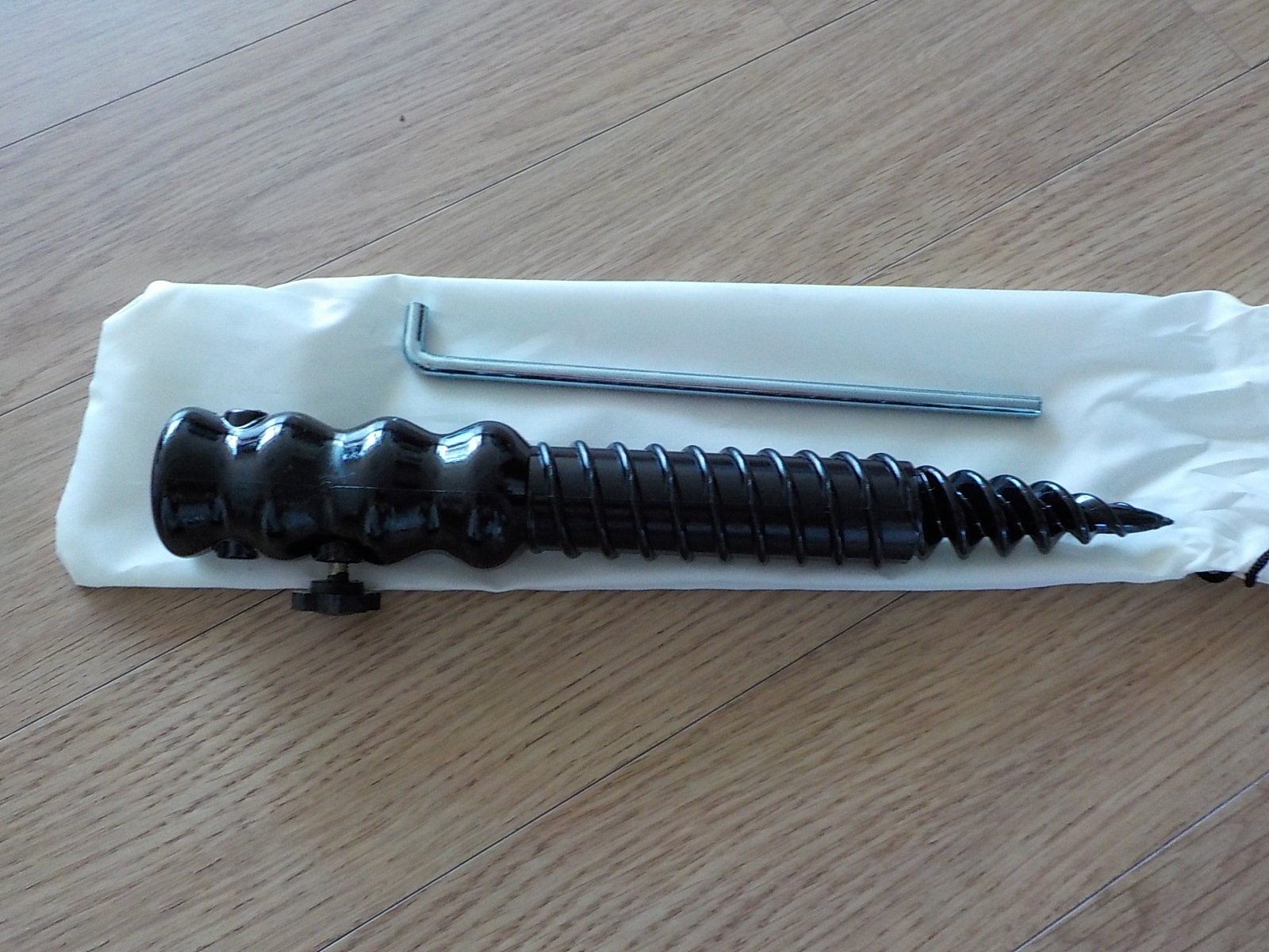 인터넷으로 구입한 파라솔 땅꽂이입니다. 어차피 택배비가 들기 때문에 3개를 구입했습니다. 하나는 자주 쓰던, 그러니까 이번에 땅꽂이가 부서진 그 파라솔 용... 다른 하나는 잘 쓰지 않는 파라솔이 있는데, 거기에는 삼지창처럼 생긴 꽂이만 있어서 스크루 모양의 땅꽂이도 이번에 같이 구입했습니다. 하나는 예비...