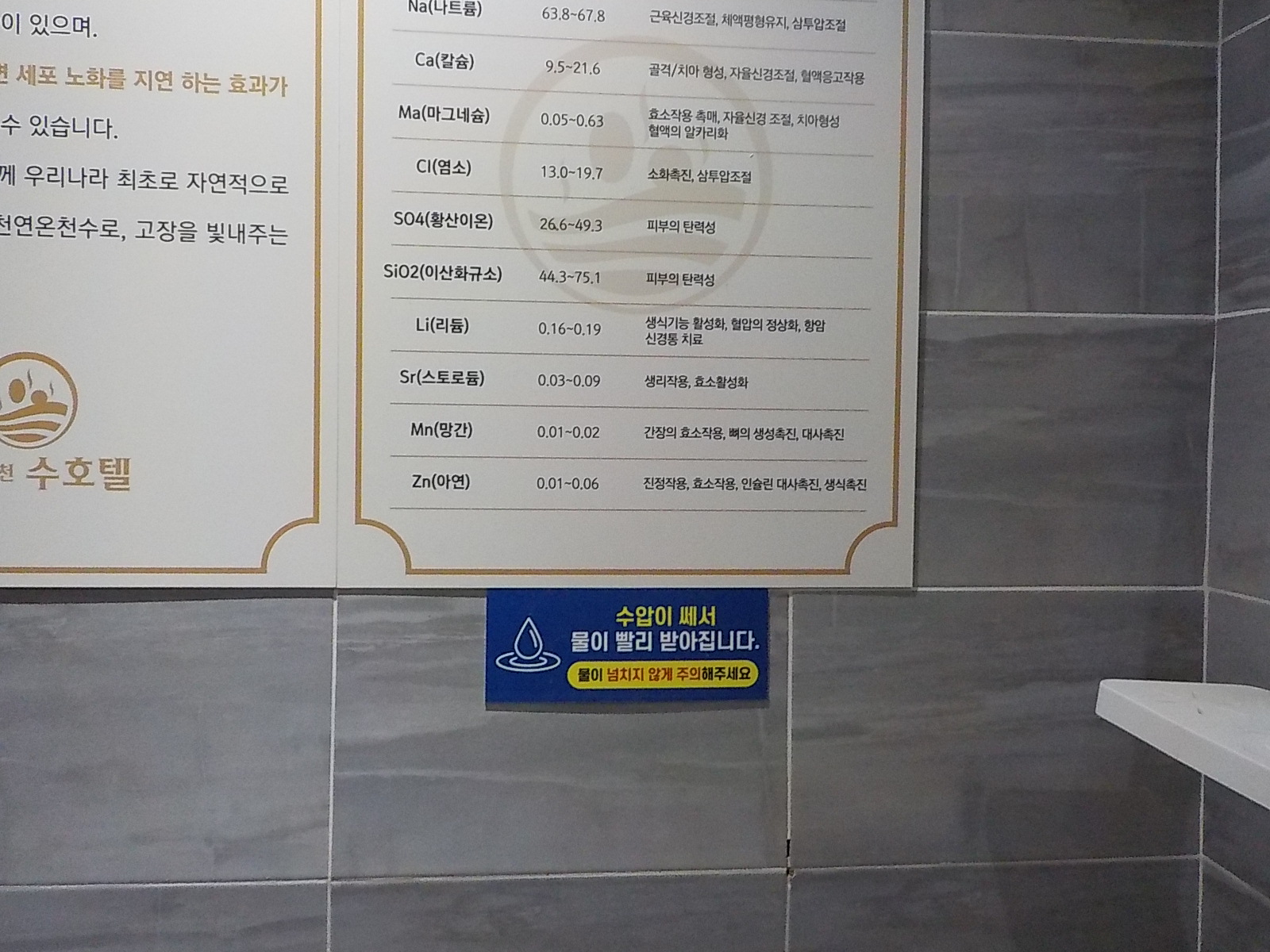 수안보 온천수가 좋긴 좋은 모양입니다. 물에 민감한 와이프가 좋은 물이라고 상당히 감탄하더군요. 아침저녁으로 씻을 만큼...
