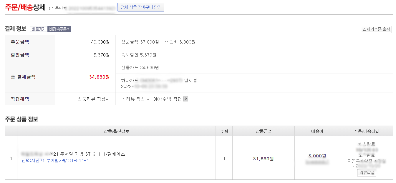 제가 이번에 구입한 가격 내역... 인터넷으로 구입하면 상품 가격이 4만 원이 안됩니다. 거기에 택배비가 포함되지만, 이런저런 가격 할인 쿠폰을 사용하면 더 이득... 대략 4만 원이 안 되는 가격으로 구입할 수 있는 낚시 릴 가방입니다. 이곳저곳 인터넷 쇼핑몰을 찾아보다가 최저 가격이다 싶은 곳에서 구입하시면 되겠습니다.