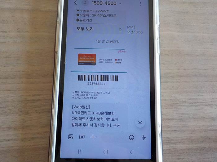 며칠 전, 핸드폰으로 모바일 주유상품권 하나가 날아왔습니다.